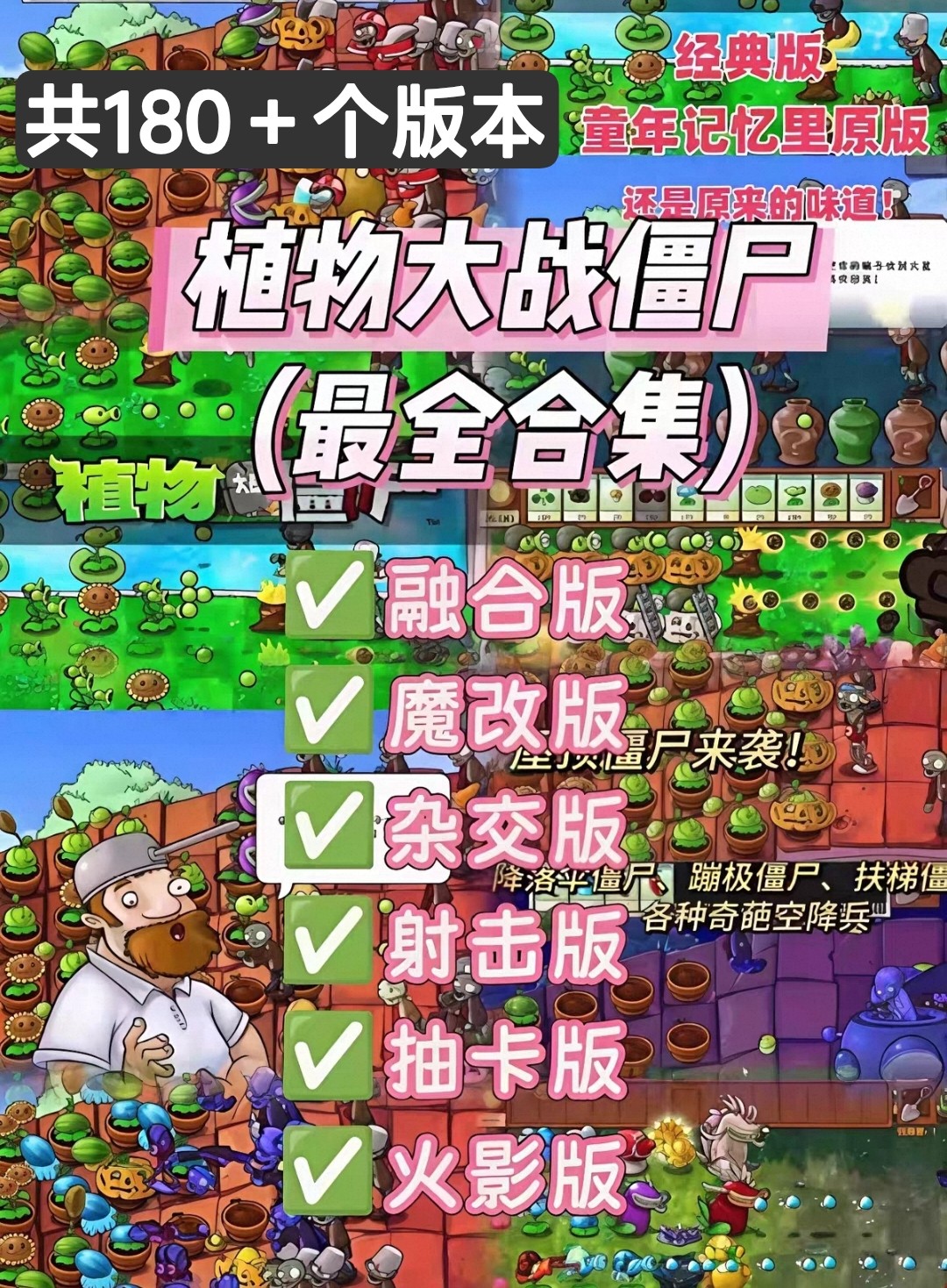 【手机/电脑/平板/iPad/MAC】植物大战僵尸版本合集(180多种)下载链接 均为最新版本 附带修改器 无限阳光金币钻石等MOD【193.6G】
