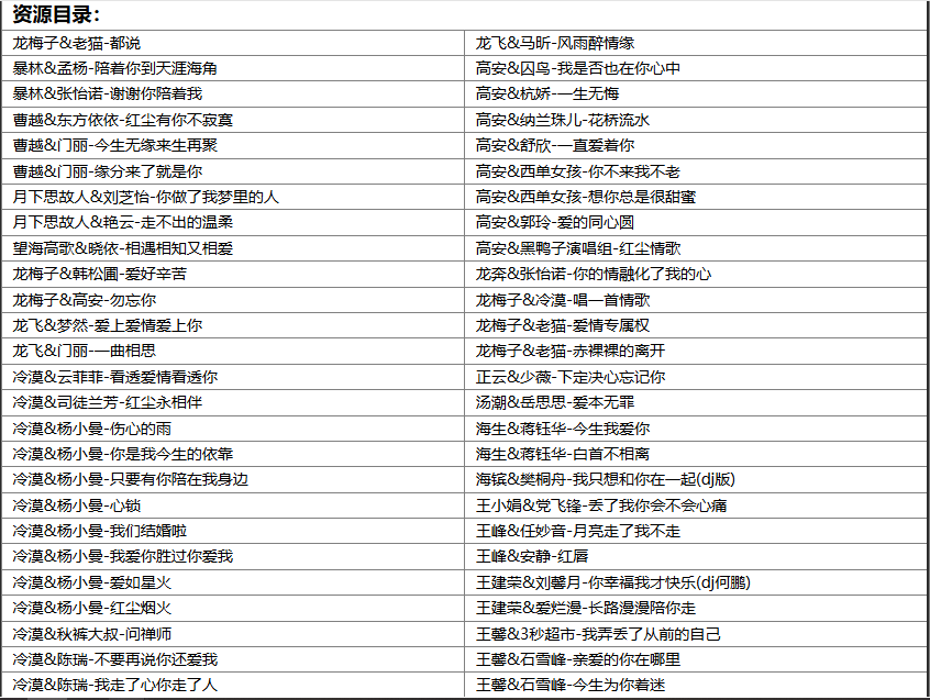 1、本贴标题:群星《精选196首男女情歌对唱华语乐坛热门流行合唱无损歌曲》[MP3/WAV][7.5GB]