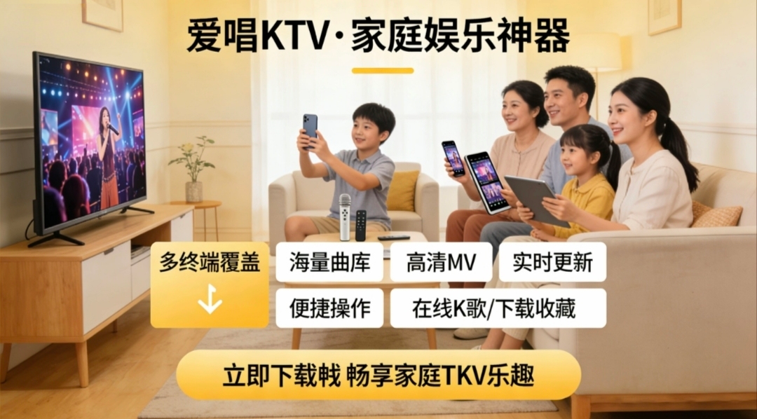 【爱唱KTV 2.16.58会员版】【手机安卓】免费家庭K歌软件,无广告支持多终端高清MV播放神器【 206M】