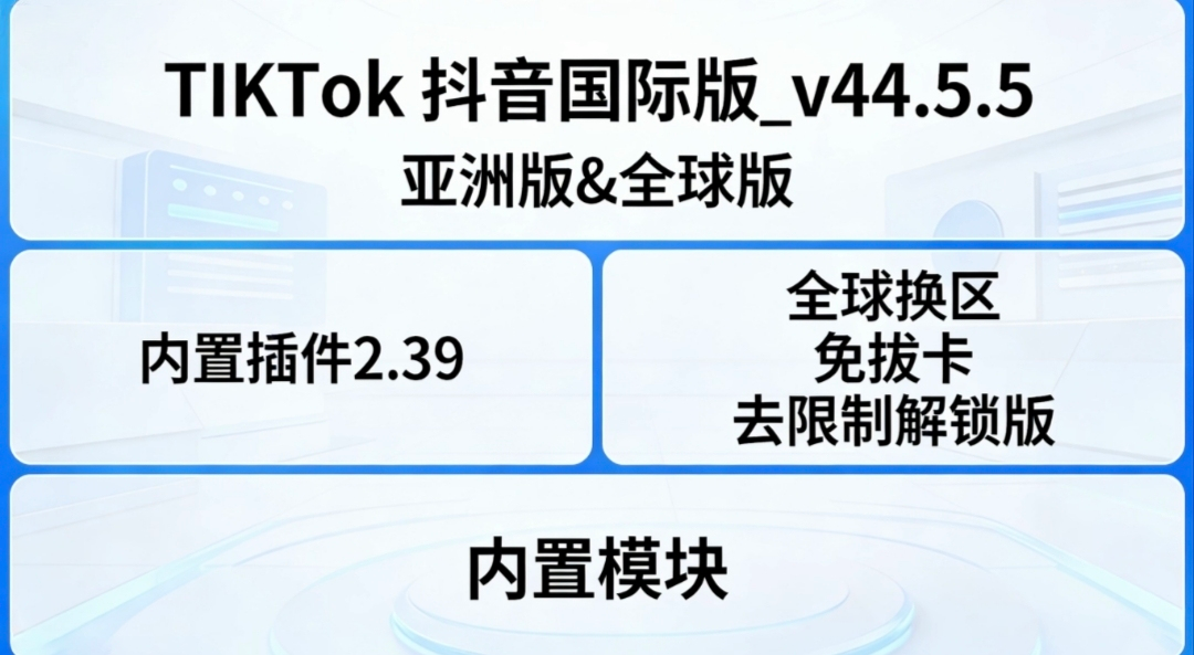 1、本贴标题:TikTok 抖音国际版 v44.5.5 全球版|免拔卡 全球换区 无限制解锁版 [2.4G]