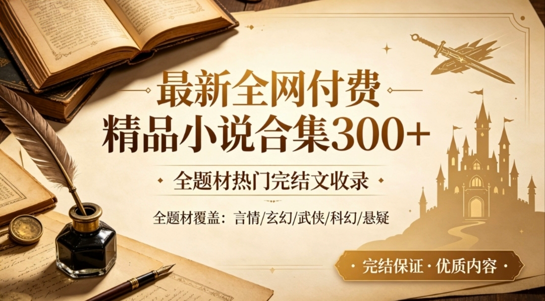 6、最新全网付费精品小说合集300+ 全题材热门完结文收录【370M】免费观看全集高清网盘资源