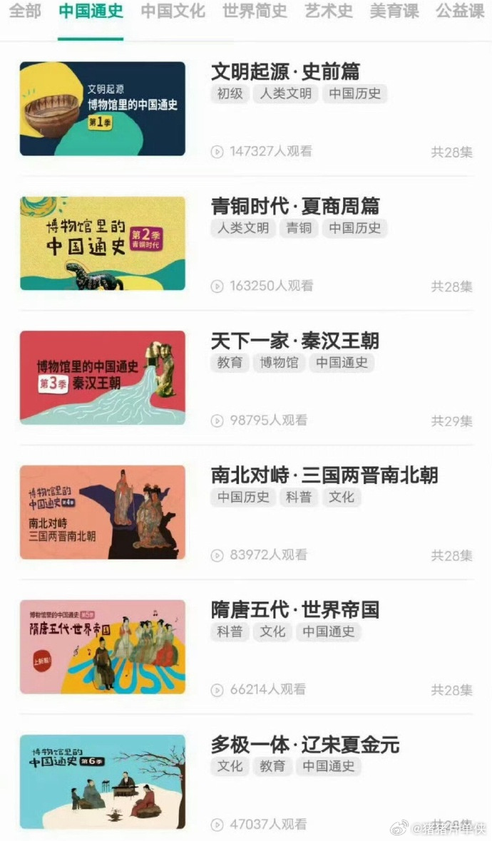 1、本贴标题:价值大几千的课程《假日博物馆合集》 (博物馆里的中国通史)1-7季