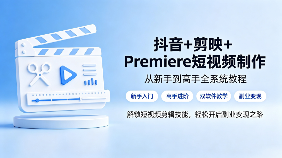 抖音剪映Premiere短视频制作全教程|从新手入门到高手进阶 系统掌握短视频剪辑运营全技能【294M】