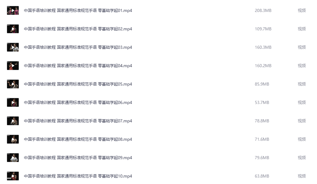 6、中国手语培训视频教程免费观看全集高清网盘资源