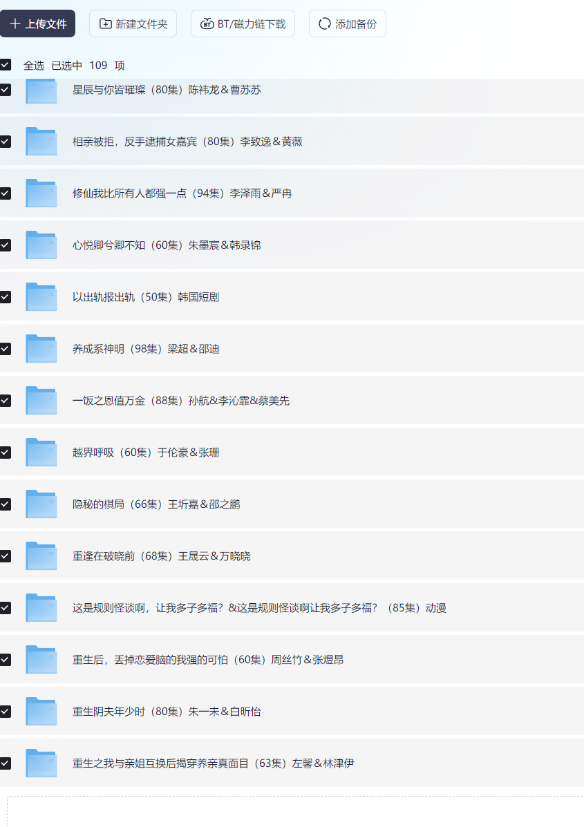 6、【短剧】20260315短剧更新 109部 100.6GB(共7909个视频)免费观看全集高清网盘资源