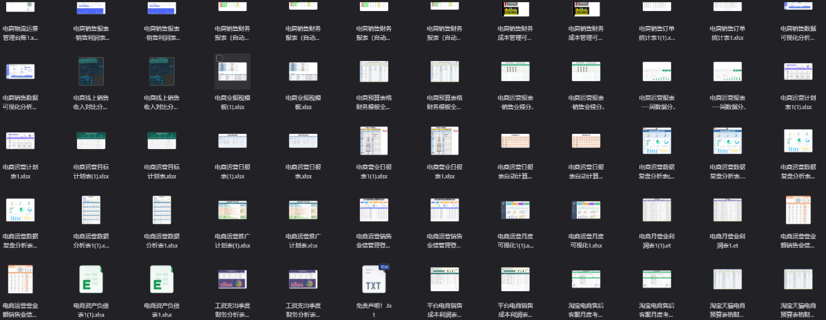 1、本贴标题:电商必看!!56套电商行业财务分析报表」包含电商所有用到的工具