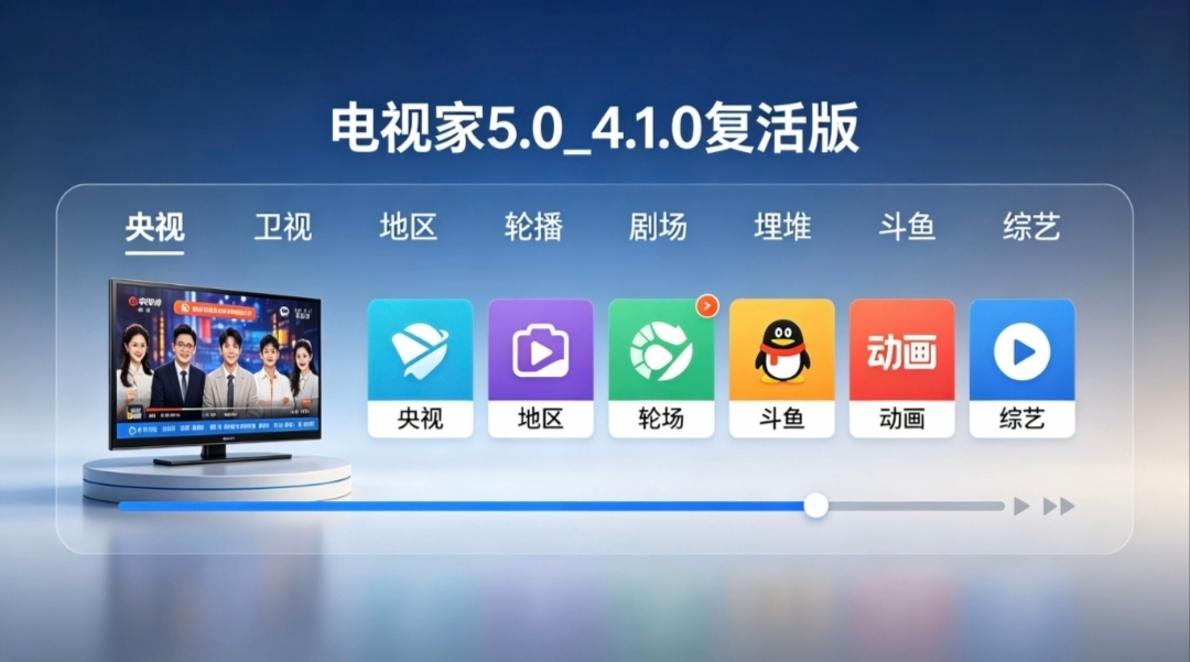 【经典电视盒子】电视家4.0_4.1.0 复活版|央视、卫视、地方台、轮播、剧场、埋堆、斗鱼、动画、综艺全聚合【13MB】