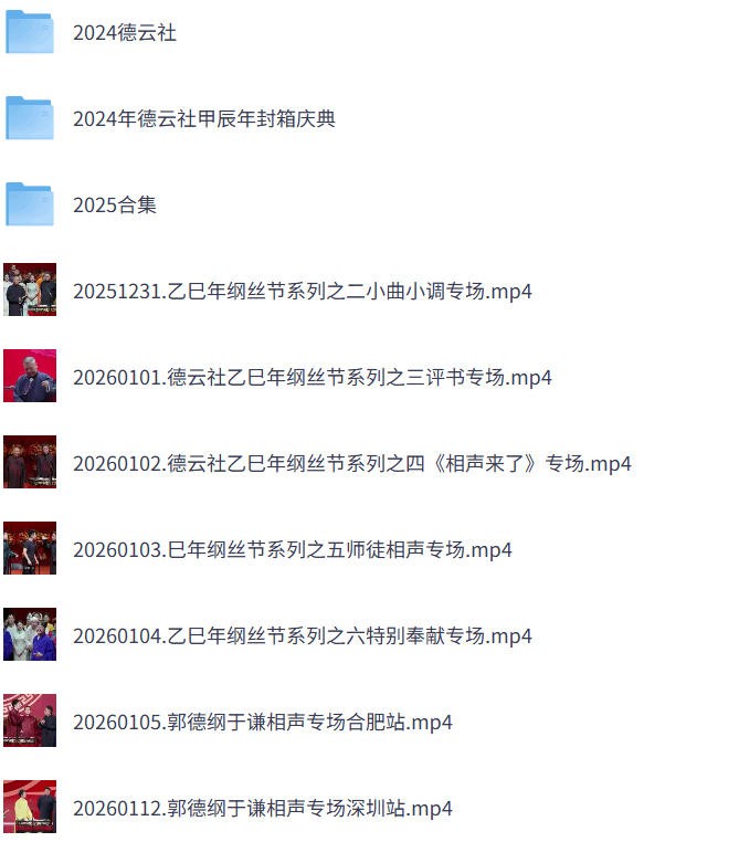 6、❤️速存【个人珍藏精品资源】德云社 相声演出合集【更新至2026年1.12期】4K+BD1080P [216G]免费观看全集高清网盘资源