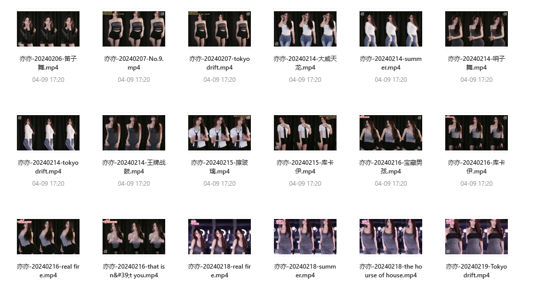 1、本贴标题:某鱼主播亦亦性感热舞直播回放超清画质37个视频合集 【5.7GB】