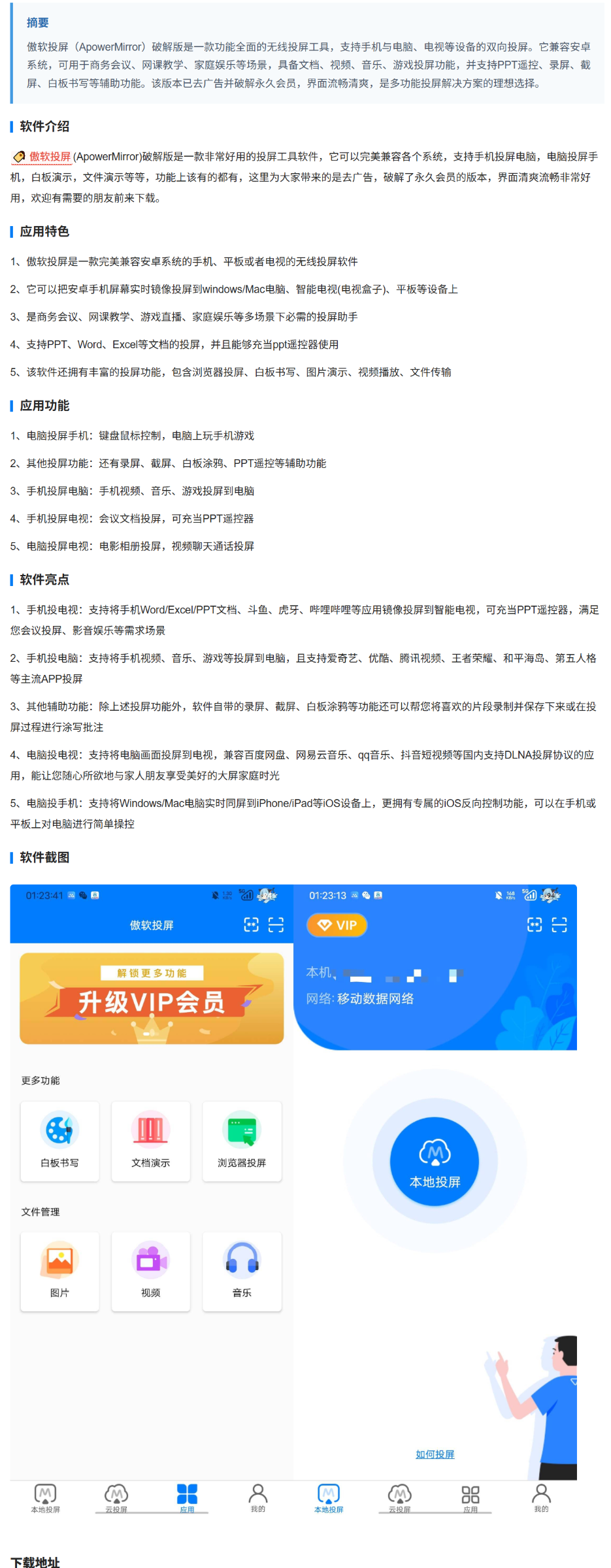 1、本贴标题:【实用软件】「Android 傲软投屏 v1.8.27 解锁专业版 」手机电脑电视双向投屏 [夸克/UC/百度/迅雷]