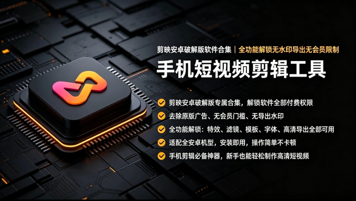剪映安卓破解版软件合集|全功能解锁无水印导出无会员限制 手机短视频剪辑工具【3.63G】